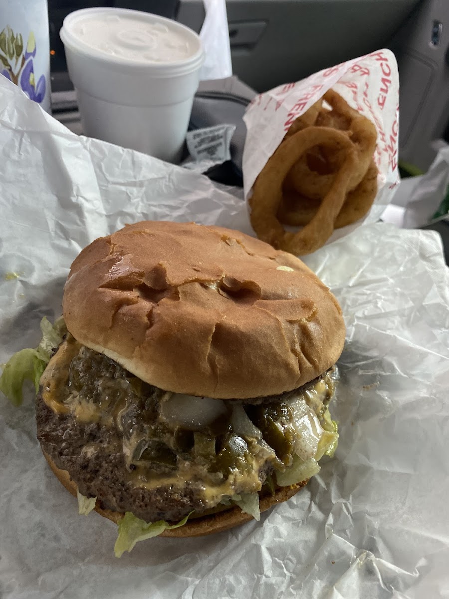 Step up to the window, and you’re immediately greeted by the tantalizing aroma of freshly grilled burgers and crispy onion rings. The menu is straightforward, yet brimming with options that will thrill any burger lover. Whether you choose the classic Hamburger for just US$3.85 or go all out with the towering Super Jalapeños Burger at US$9.55, each burger is crafted with quality ingredients that shine through in every bite. Pair your burger with their sensational onion rings, praised by loyal customers for their perfect crispiness, and you have a meal that embodies comfort food at its finest.
